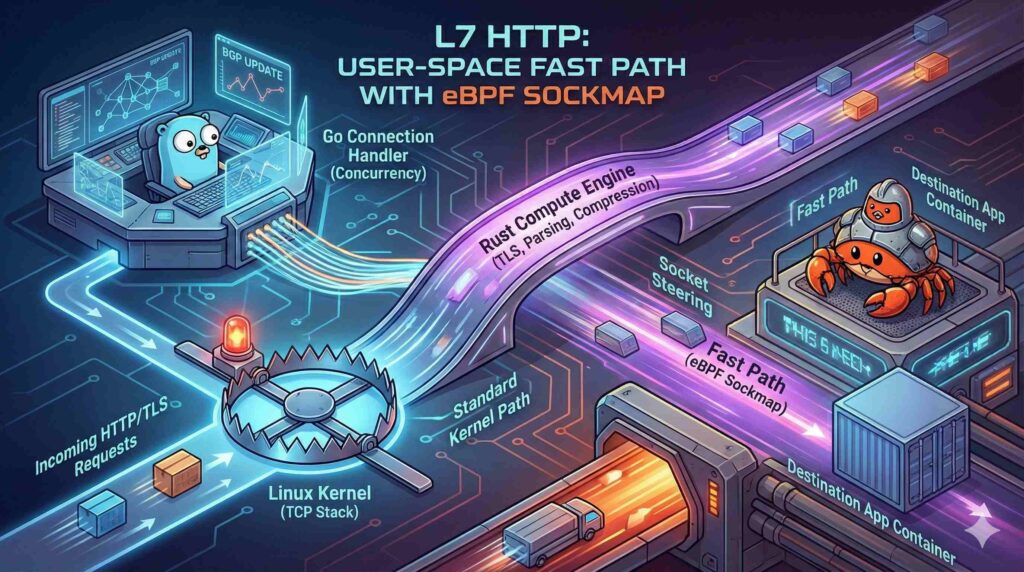 eBPF cannot easily handle this because HTTP payloads are variable-length and require complex state management that exceeds kernel verifier limits. You are forced back into User Space, where the Go Runtime’s Garbage Collector usually becomes the bottleneck.