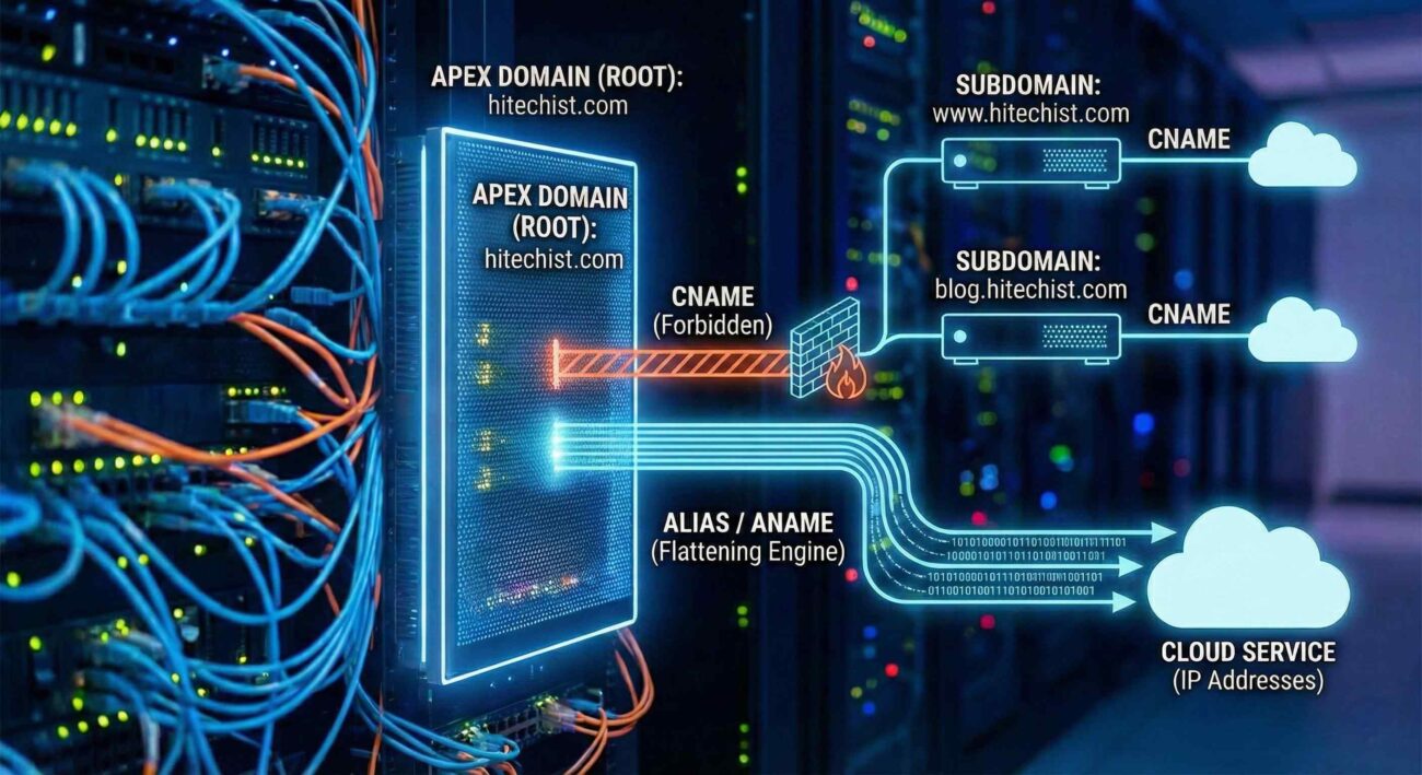 This is a classic “gotcha” in web infrastructure. Here is everything you need to know about the Apex Domain, why it behaves differently than the rest of your zone, and the modern workarounds that solve the problem.